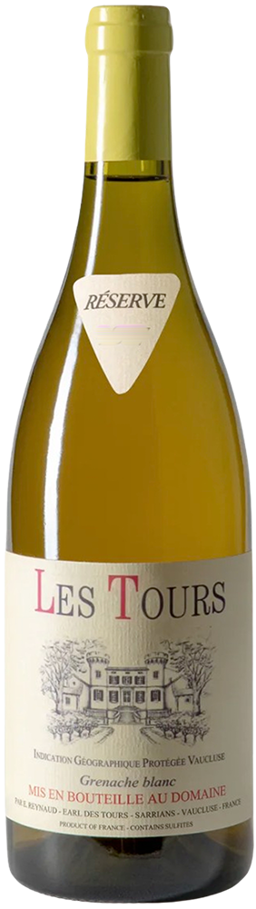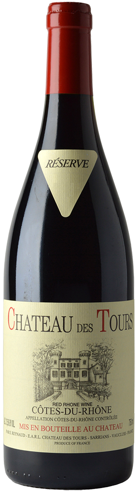 Forty hectares of vineyards, situated in the Vacqueyras area a few kilometers north of Sarrians, were purchased by the Reynaud family in 1935. The old maison is flanked on both sides by tall towers (hence Des Tours). Emmanuel took over this château from his father Bernard (Jacques' brother) in 1989. The vineyards are tended with organic methods, manually plowed, harvested much later than other producers, and centered around a reverence for old-vine Grenache. Grenache planted in 1955, Syrah planted between 1981-1996 on a sandy, west-facing vineyard.